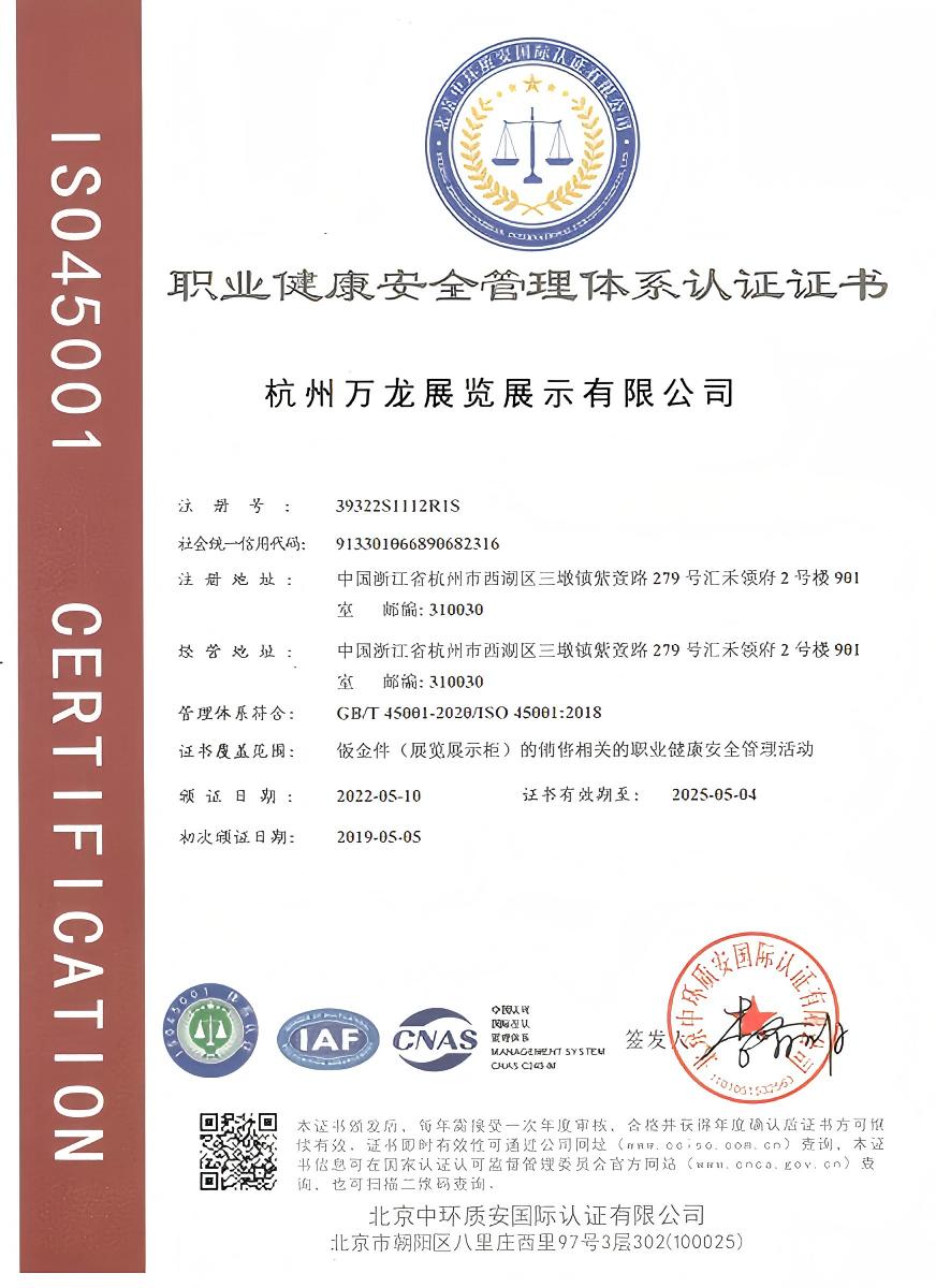 職業(yè)健康安全管理體系認證證書